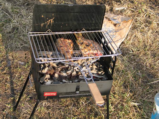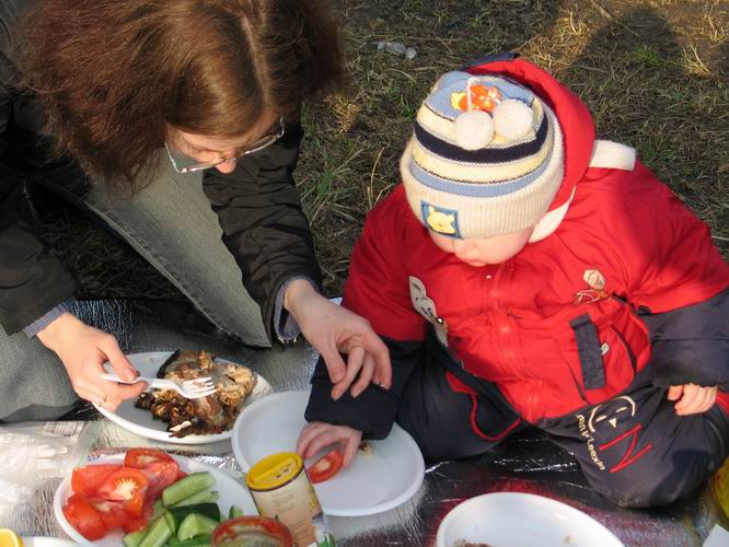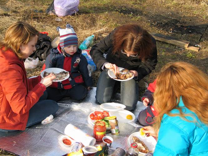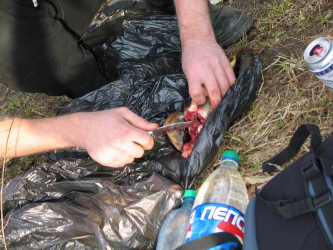 Антон разделывает рыбу